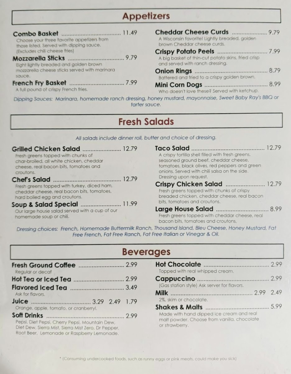 Welcome to Mohnen's Family Restaurant, a beloved dining spot nestled in Appleton, WI. Renowned for its hearty meals, the menu features a delightful array of options to suit every palate. Start your culinary journey with crispy appetizers like Chicken Strips or golden-brown Onion Rings, perfect for sharing. Moving onto the fresh salads, the Grilled Chicken Salad is a standout, topped with juicy chicken and savory bacon.